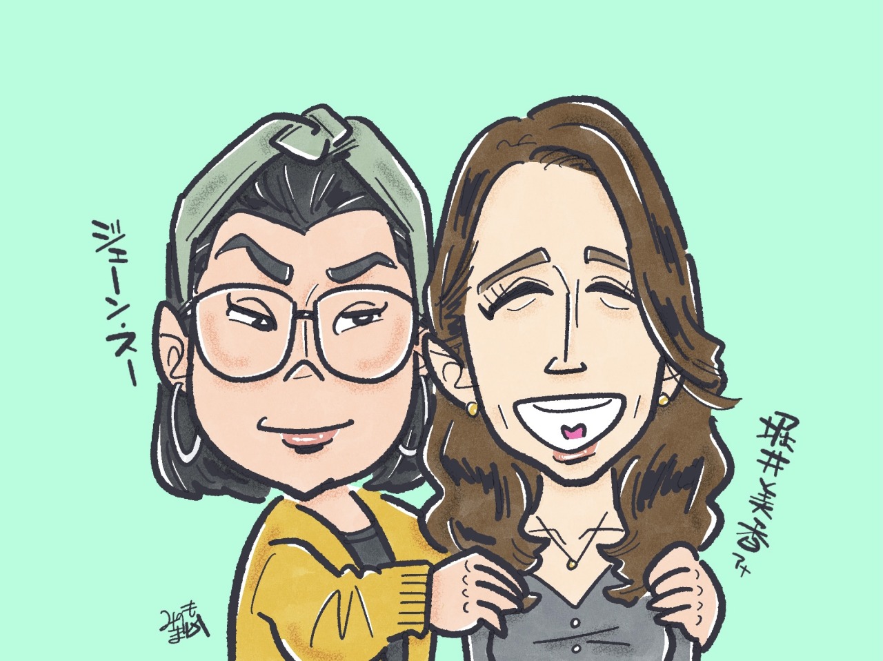 ジェーン・スーさん&堀井美香アナの似顔絵イラストを描きました。