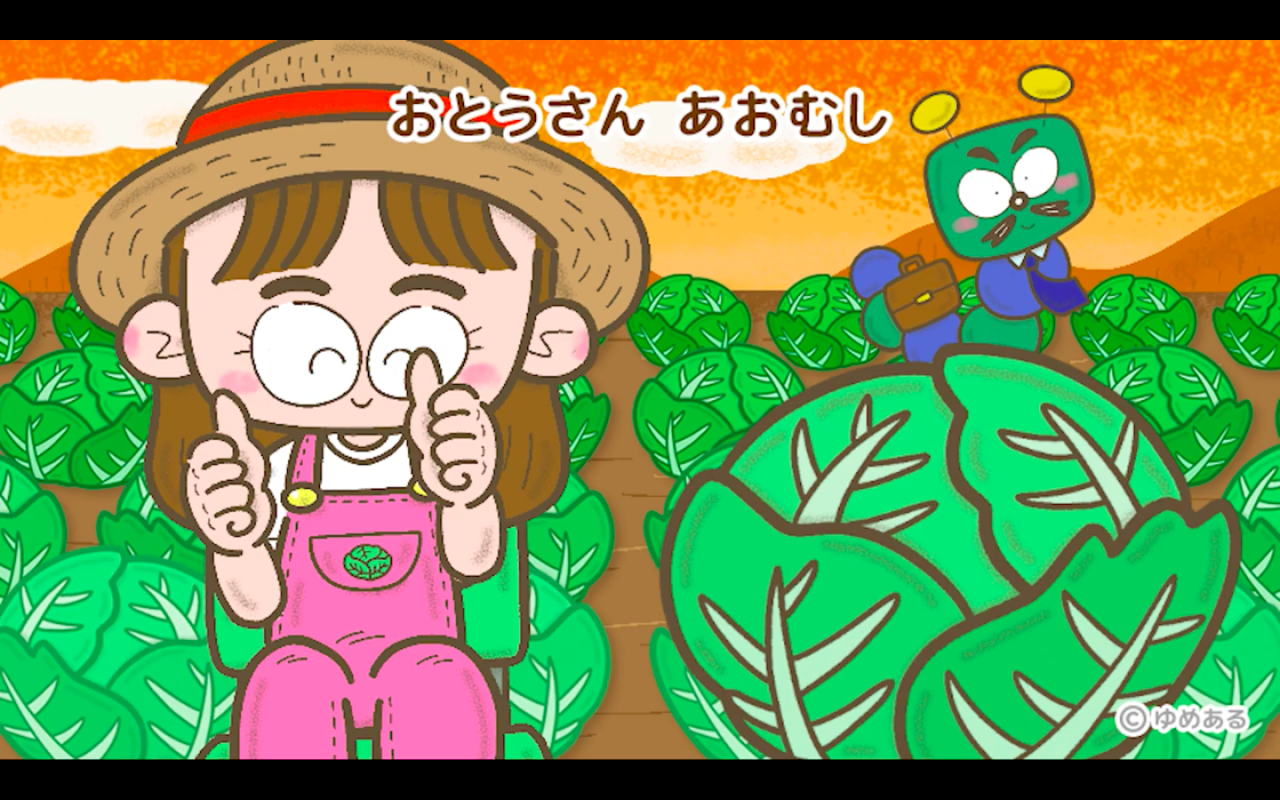 保育士・教師向けオンライン動画教材「ゆめあるチャンネル」の手遊び動画「キャベツの中から」イラストを描かせていただきました。