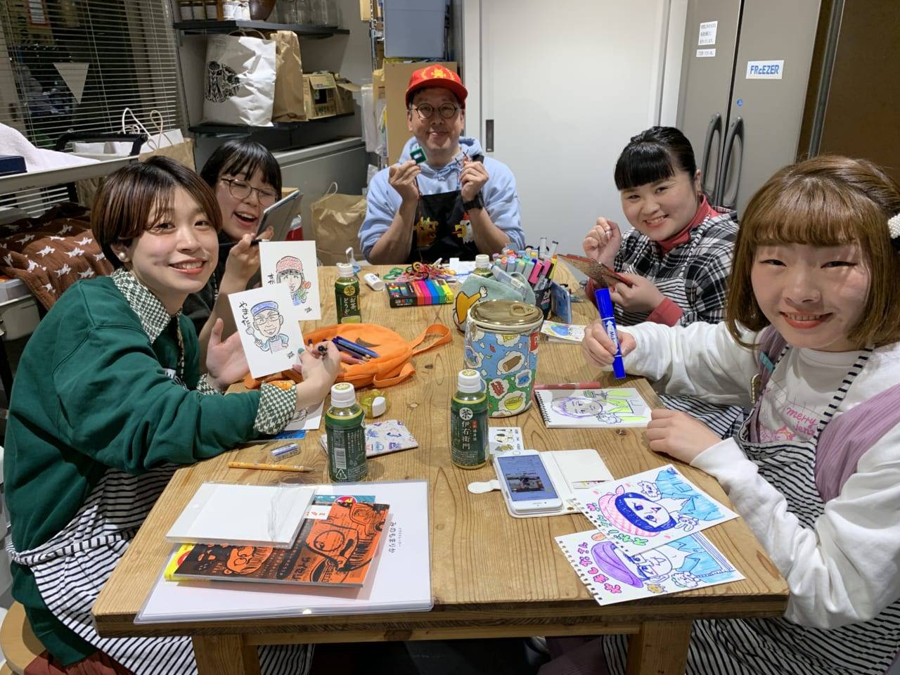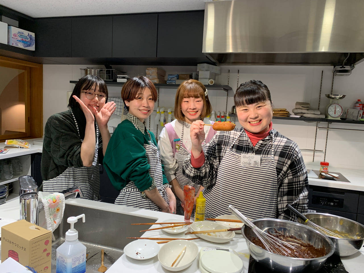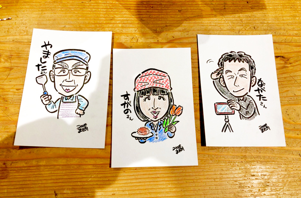 菅野さん・山下さん・永田さんとたのしくコロッケとアメリカンドックを作りました。似顔絵も中継中に描きました!