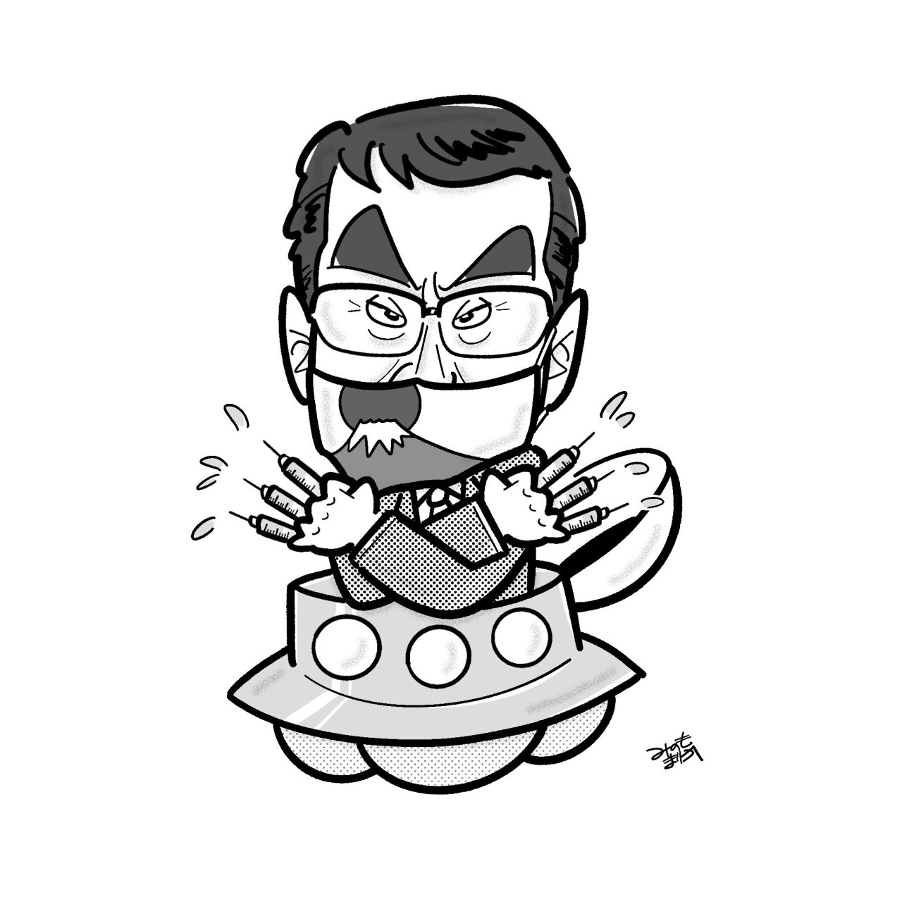 ワクチンについてニュース番組でよく見かける河野太郎さんの似顔絵イラストを描きました。 昨年は防衛大臣としてUFOへの対処方針を公表(!?)