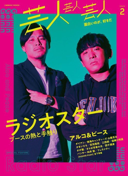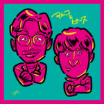 お笑い芸人、アルコ&ピースの平子さん・酒井さんの似顔絵イラストを描きました。お笑い芸人マック本「芸人芸人芸人」風の色合いで描いてみました!