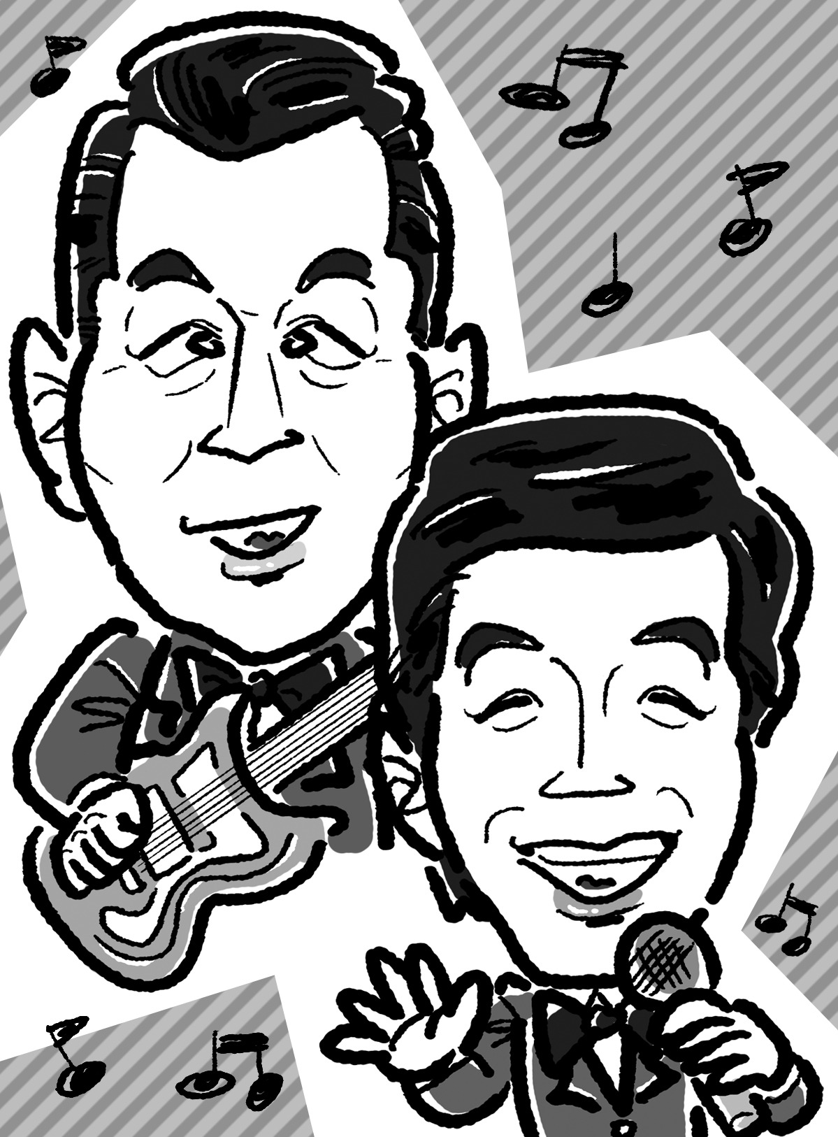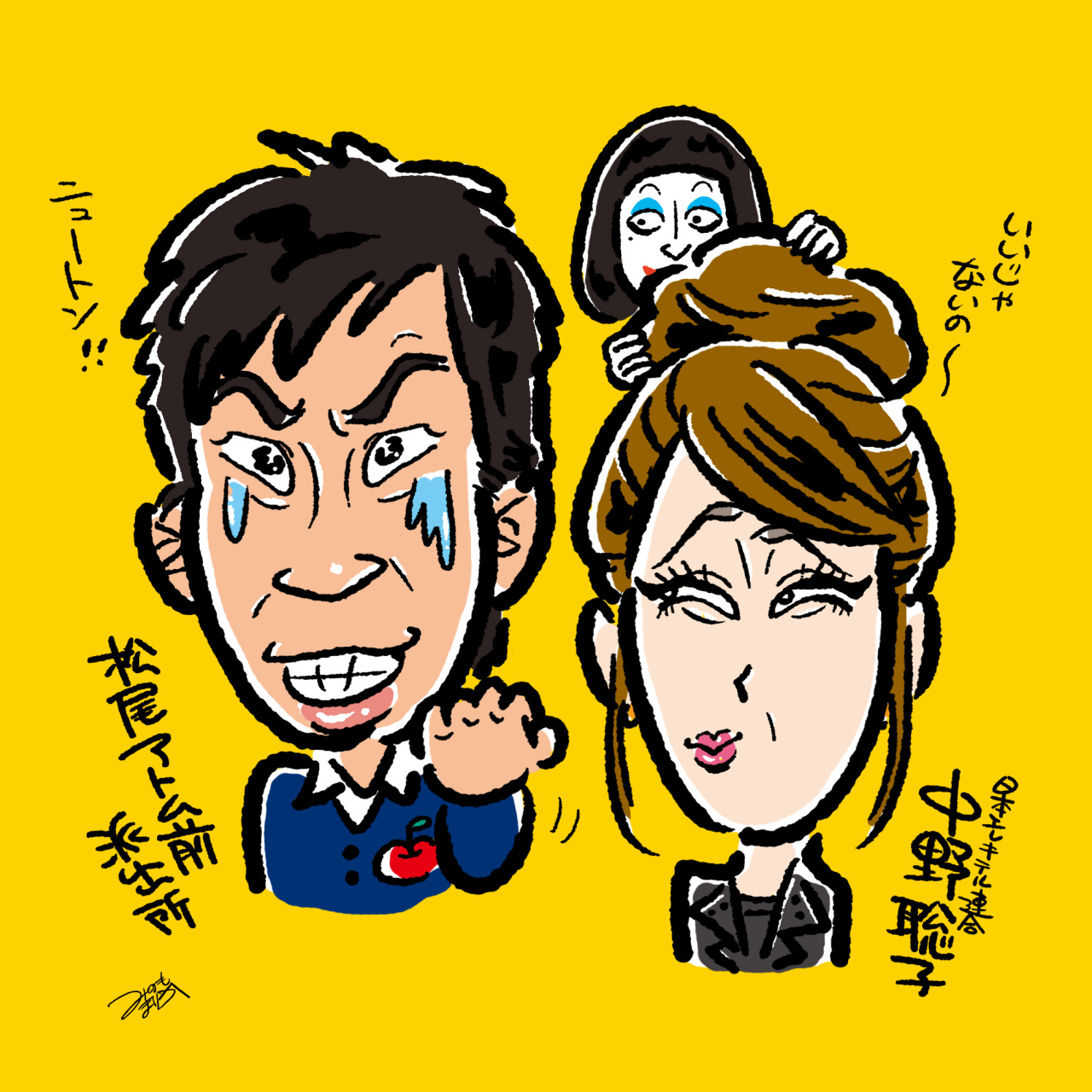 タイタンの日本エレキテル連合・中野聡子さんと松尾アトム前派出所さんの似顔絵イラストを描きました。交際0日婚おめでとうございます!!