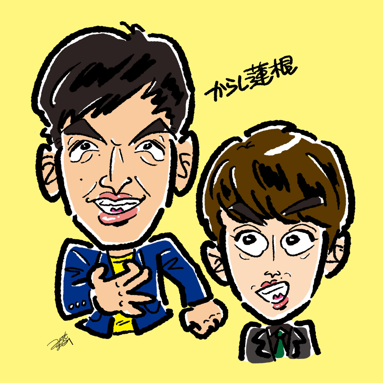 お笑い芸人、からし蓮根の杉本青空さん・伊織さんの似顔絵イラストを描きました。