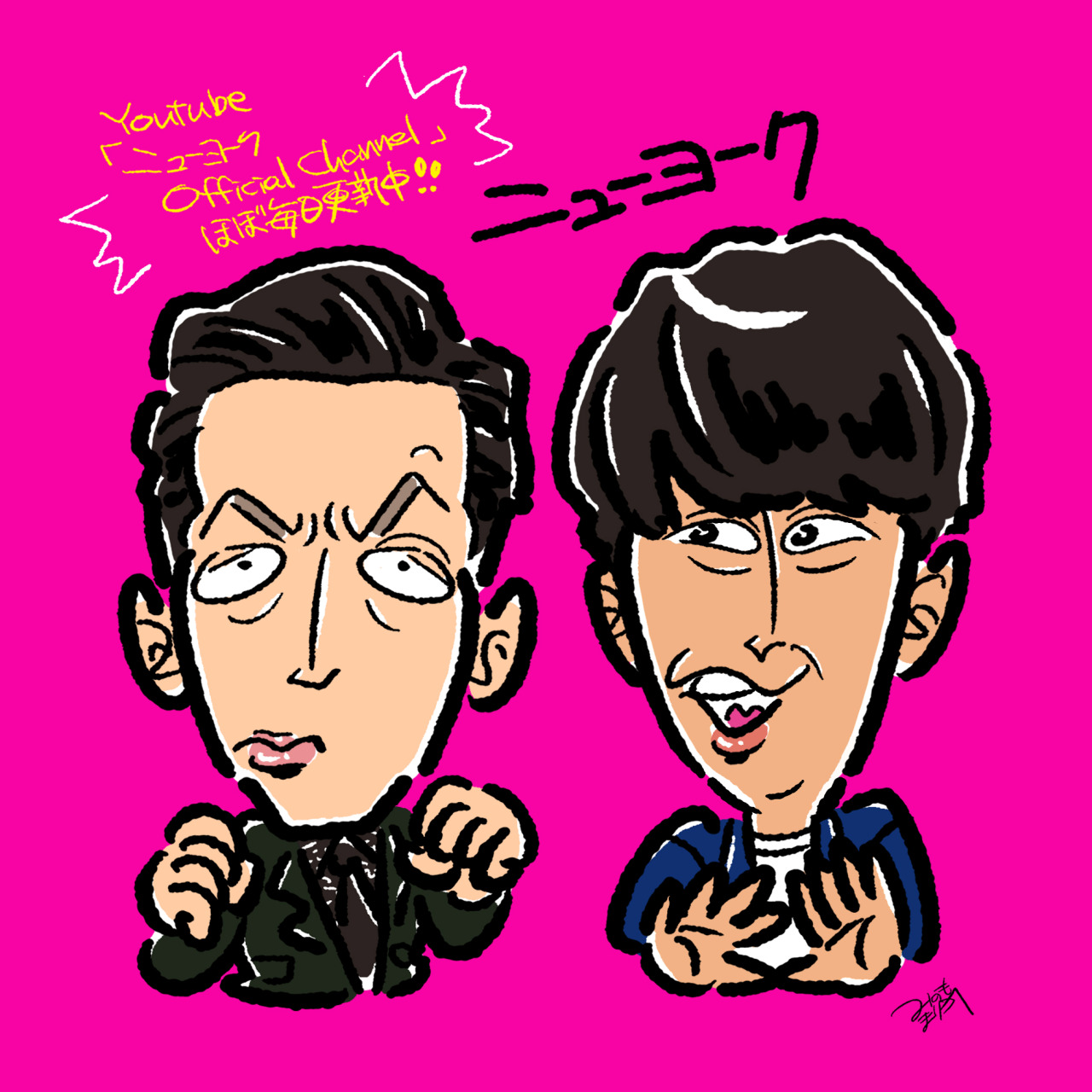 お笑い芸人ニューヨーク、嶋佐和也・屋敷裕政(敬称略)の似顔絵を描きました。