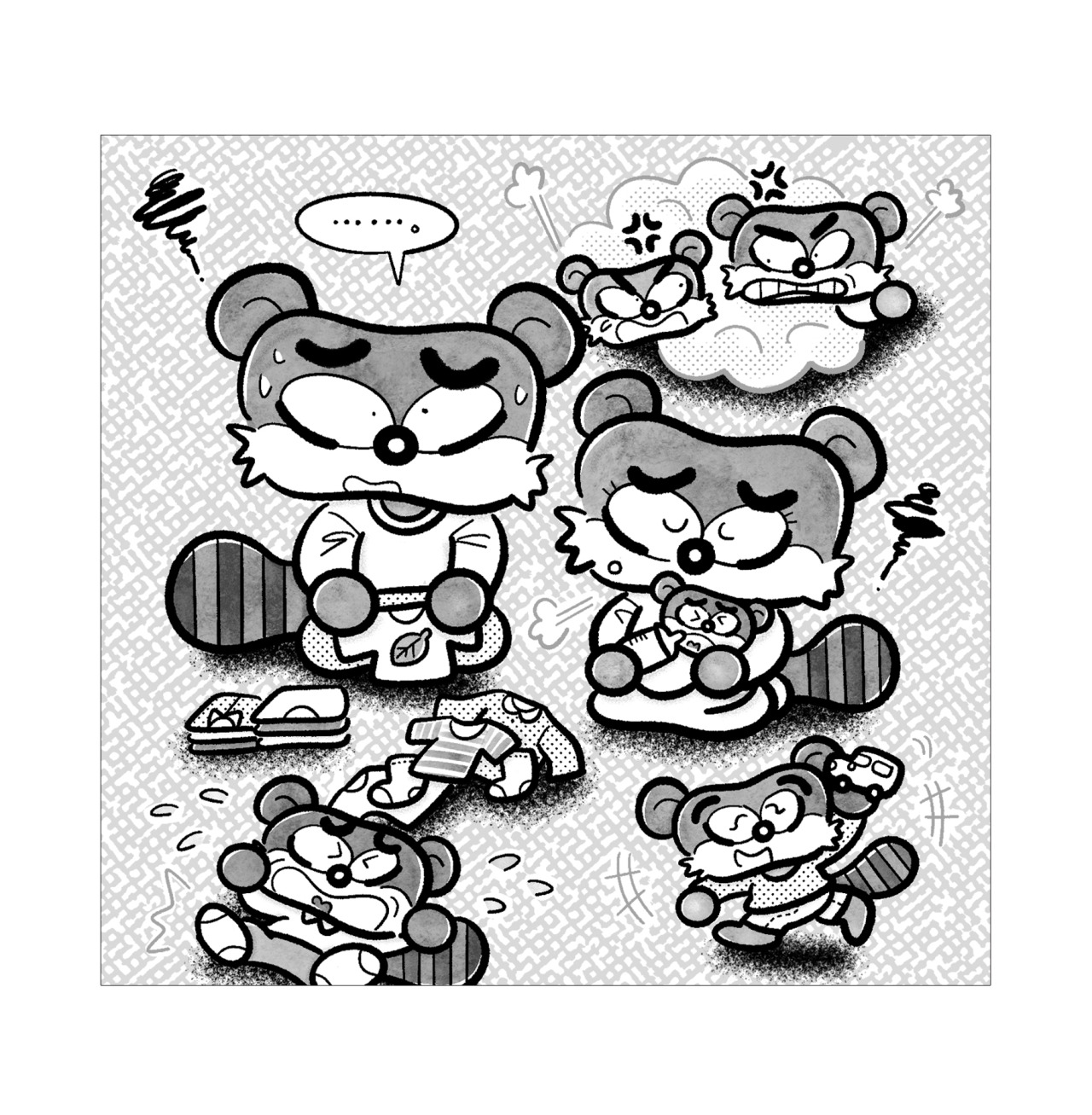 2022年9月16日発売の「漢字ランド11月号(コスミック出版社様)」にて、家事や子育てで収拾がつかなくなっているたぬき親子のイラストを描かせていただきました。