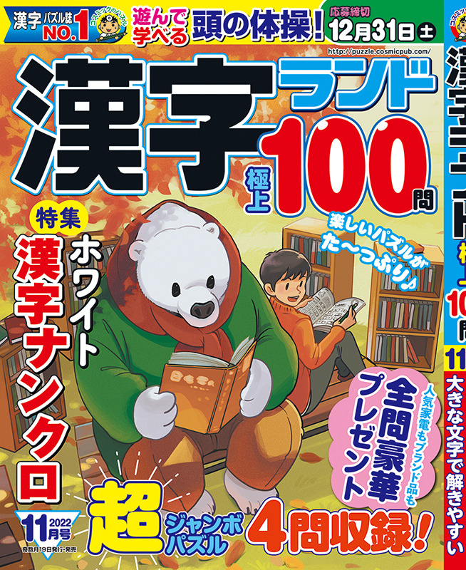 2022年10月19日発売の「特選漢字100問12月号(コスミック出版様)」にて、スキャンダルが発覚!?熟語スケルトンのイラストを描かせていただきました。
