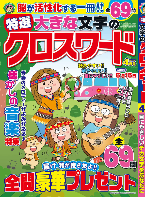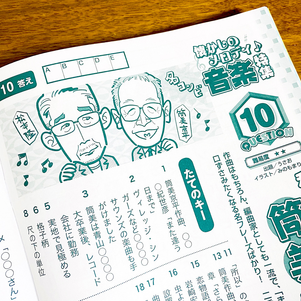 特選大きな文字のクロスワード4月号(コスミック出版様)にて、和製ポップスの立役者、筒美京平さんの似顔絵イラストを描かせていただきました。