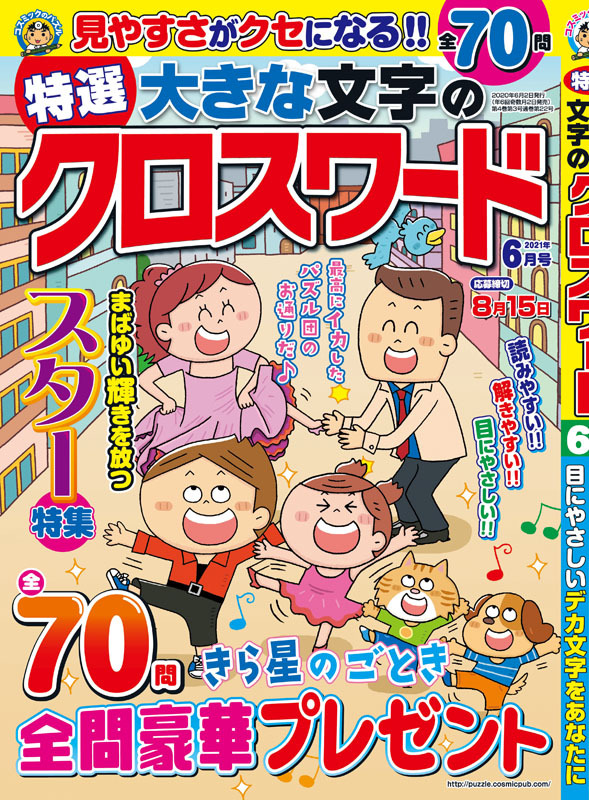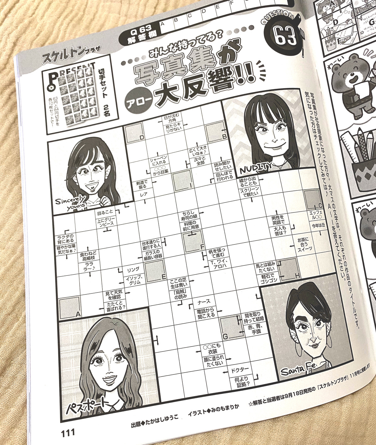 「特選大きな文字のクロスワード6月号(コスミック出版様)」にて有名人の似顔絵イラストを描かせていただきました。