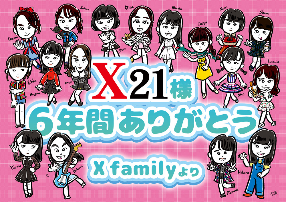 次世代アイドルX21さんのラストライブに華を添えるスタンドフラワーボードのイラストを描かせてもらいました!