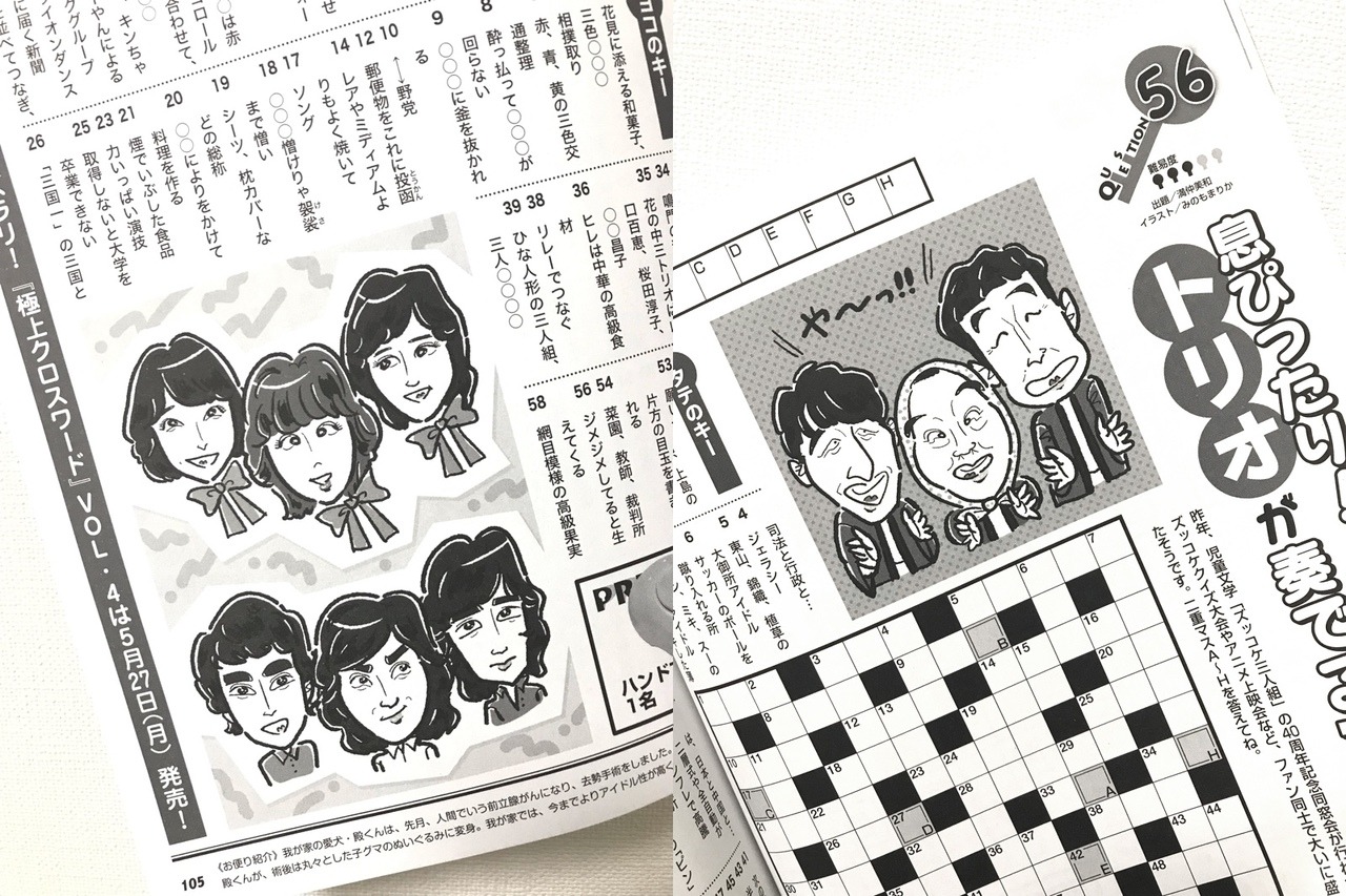 今回も似顔絵盛りだくさんで私の心はホクホクです。全国の書店に置かれていると思うので是非解いてみてくださいね〜