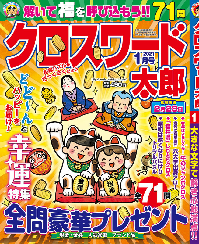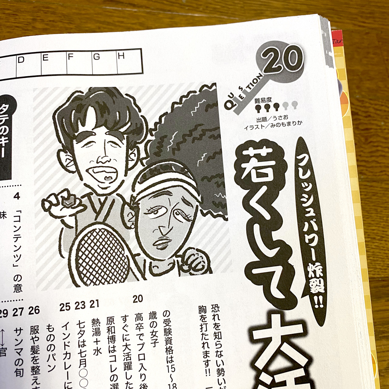 クロスワード太郎1月号(コスミック出版)にて、スポーツ選手や最遊記・北の国からなどの名作ドラマの似顔絵イラストを描かせていただきました。