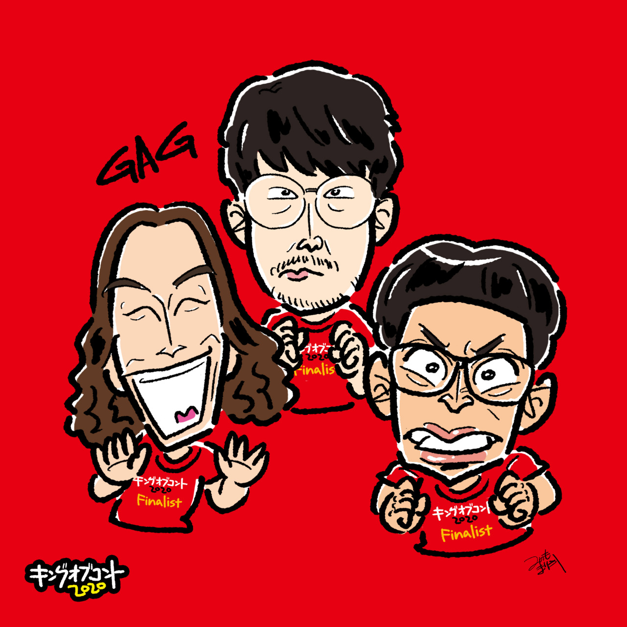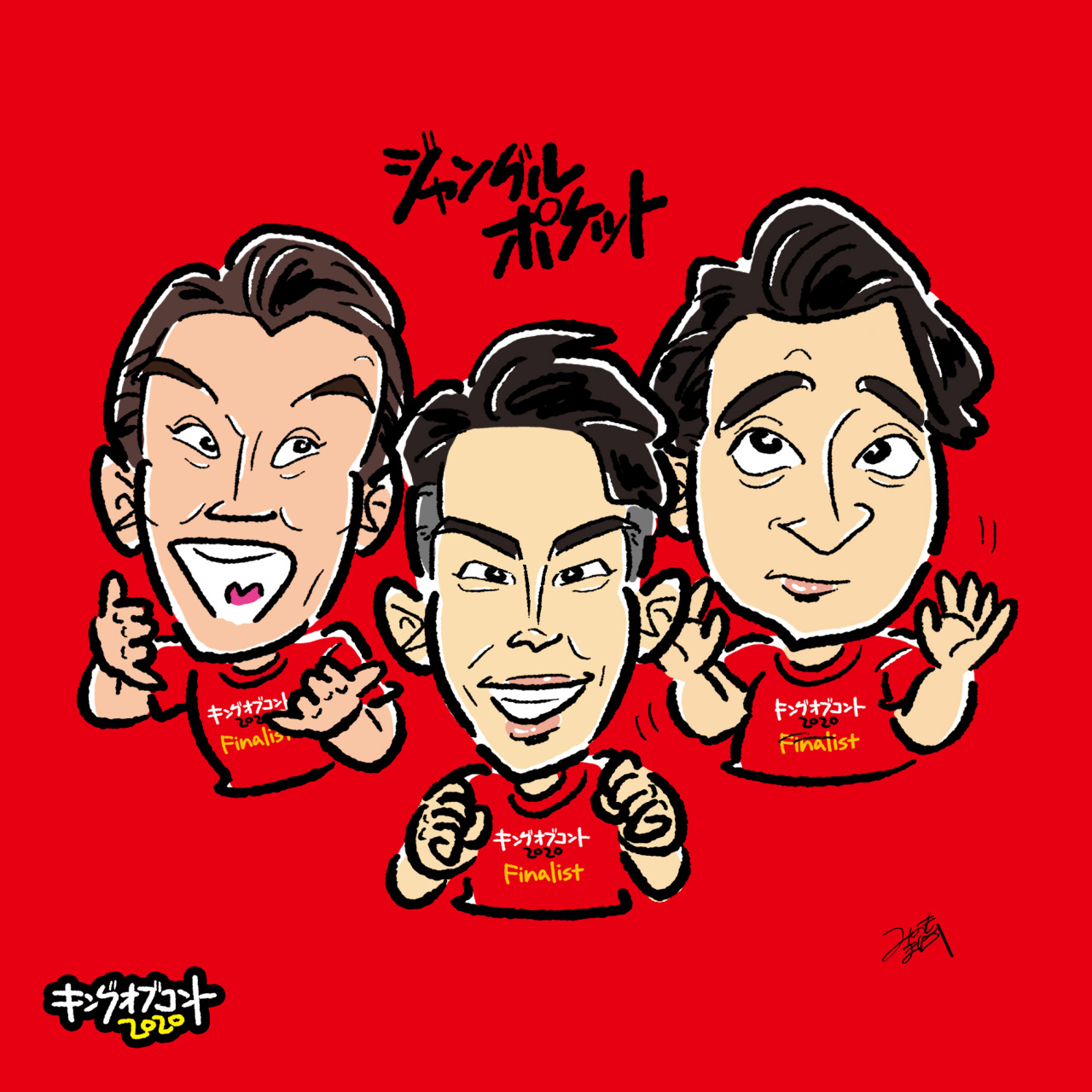お笑い芸人ジャングルポケット、おたけ・太田博久・斉藤慎二(敬称略)の似顔絵イラストを描きました。