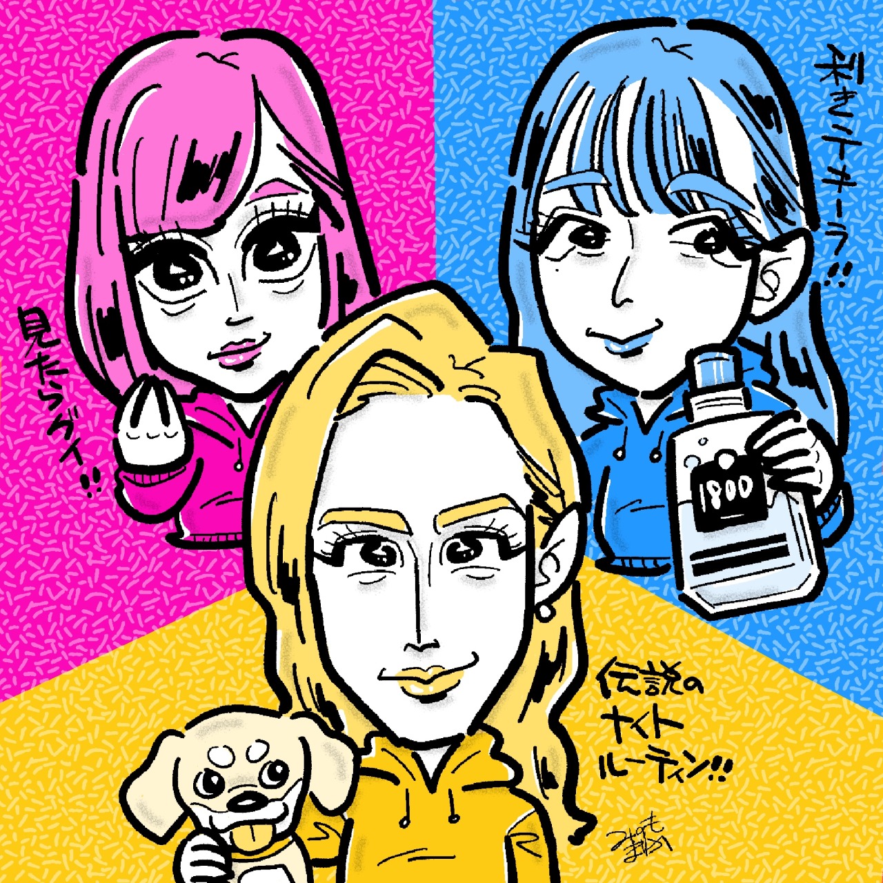 ユーチューバーのヘラヘラ三銃士、ありしゃん・さおりん・まりなさんの似顔絵イラストを描きました。