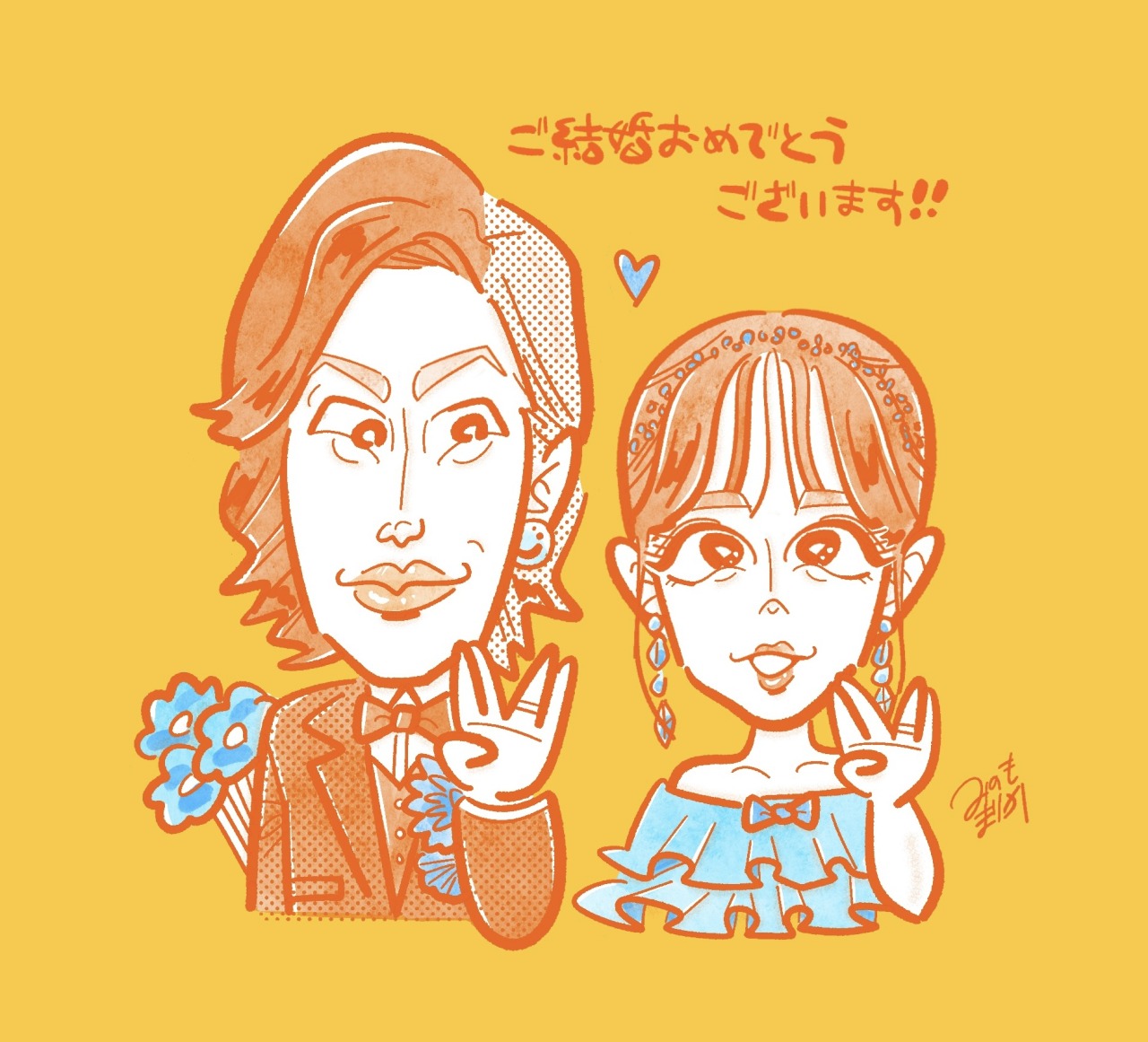 人気YouTubeユニット・東海オンエアのてつやさんと元AKB48のタレント峯岸みなみさんの似顔絵イラストを描きました。